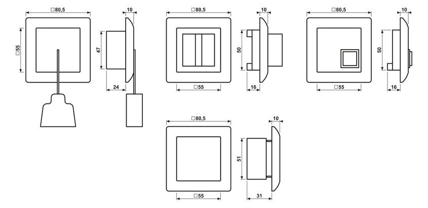 Die Komponenten des JUNG Notrufsystems werden mit Rahmen aus den Serien AS / A, CD oder LS ergänzt, so dass ein einheitliches Design im gesamten Gebäude möglich ist. Im kompletten Notrufset sind die Rahmen bereits enthalten.