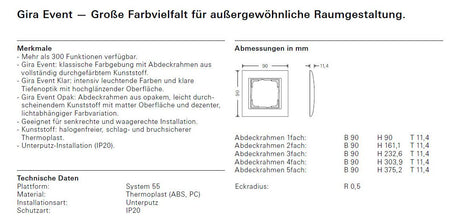 GIRA 0211738 Abdeckrahmen 1fach Zwischen rahmen AN Event Klar Schwarz