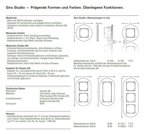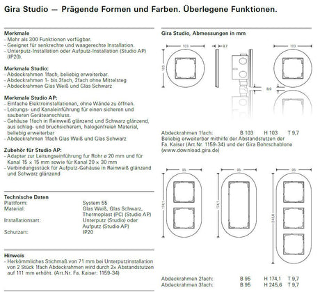 GIRA 0212135 Abdeckrahmen 2fach Studio Schwarz Glas