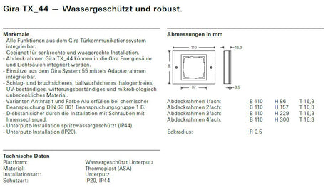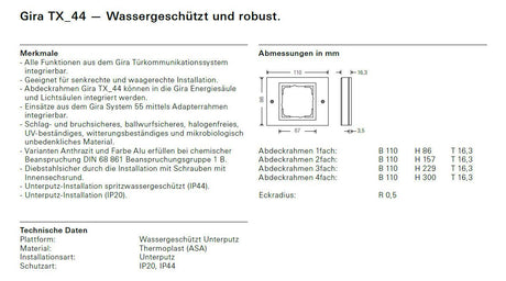 GIRA 021167 Abdeckrahmen 1fach TX_44 WG UP Anthrazit