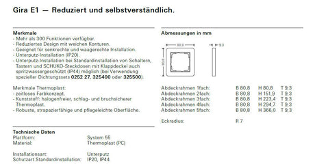GIRA 0211375 Abdeckrahmen 1fach flach E2 Grau matt