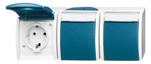 BJ 2300/3EWN-53 Steckdose m.Klappdeckel waagerecht 3f ocean IP44 grau/blau