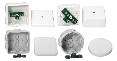 Mureva Abzweigdosen. Mureva BOX, runde Abzweigdose, 4 Tüllen DM 20, 60x60x40 mm. VPE 5. Kunststoff-Abzweigdose für Feuchtraumanwendungen. Schutzart IP 55, Farbe Grau RAL7035. Unverlierbarer Deckel durch Halteband, schnelle Kabeleinführung durch abgestufte Membran. Montage mit 1-Punkt-Befestigungsdübel, Standarddübel oder Bolzenschubgerät möglich. Deckelbefestigung Clip.