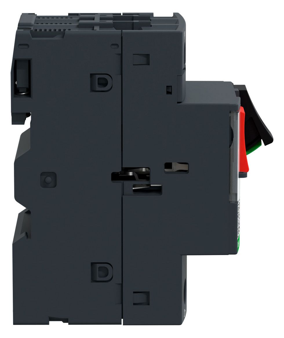 TeSys Motorschutzschalter GV2ME. Motorschutzschalter, 3P, Tasterbetätigung, Schraubanschluss. Bemessungsleistung 2,2 kW, Einstellbereich 4-6,3 A. Mit thermischen und magnetischen Auslösern. In der Grundausführung plombierbar und abschließbar. Betätigung über Taster, Schraubklemmen. Bemessungsspannung 400 V, nach AC-3.