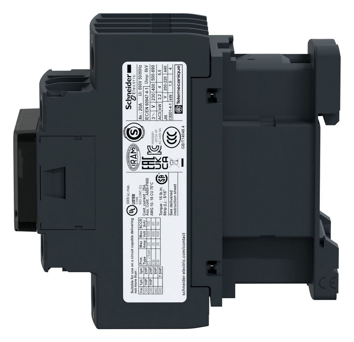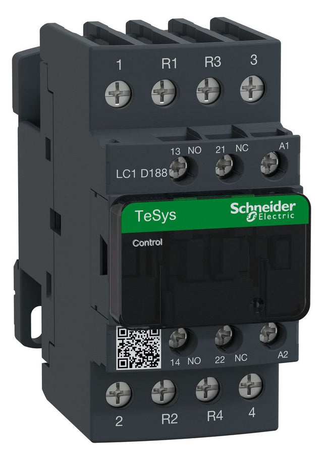 Leistungsschütz TeSys LC1D. 4 polig, 2 Schließer + 2 Öffner. Zusätzliche Hilfskontakte- 1 Schließer + 1 Öffner, Spule 230 V AC. Abmessung (BxHxT) 45x105x99 mm, Gewicht 0,425 kg. Kategorie AC-1. ohne integriertes Beschaltungsmodul. Schnelle und einfache Einrichtung. Sichere und langlebige Stromverbindung mit Everlink und Federklemmen. Geeignet für Sicherheitsanwendungen durch mechanisch gekoppelte Kontakte und Spiegelkontakte. Zertifizierungen nach RINA, GOST, CSA, CCC, UL, LROS (Lloyds register of shipping), GL, DNV. Produktstandards gem.