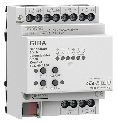 GIRA 503300 Schalt-/Jalousieaktor 6/3fach 16A REG Komfort KNX Secure