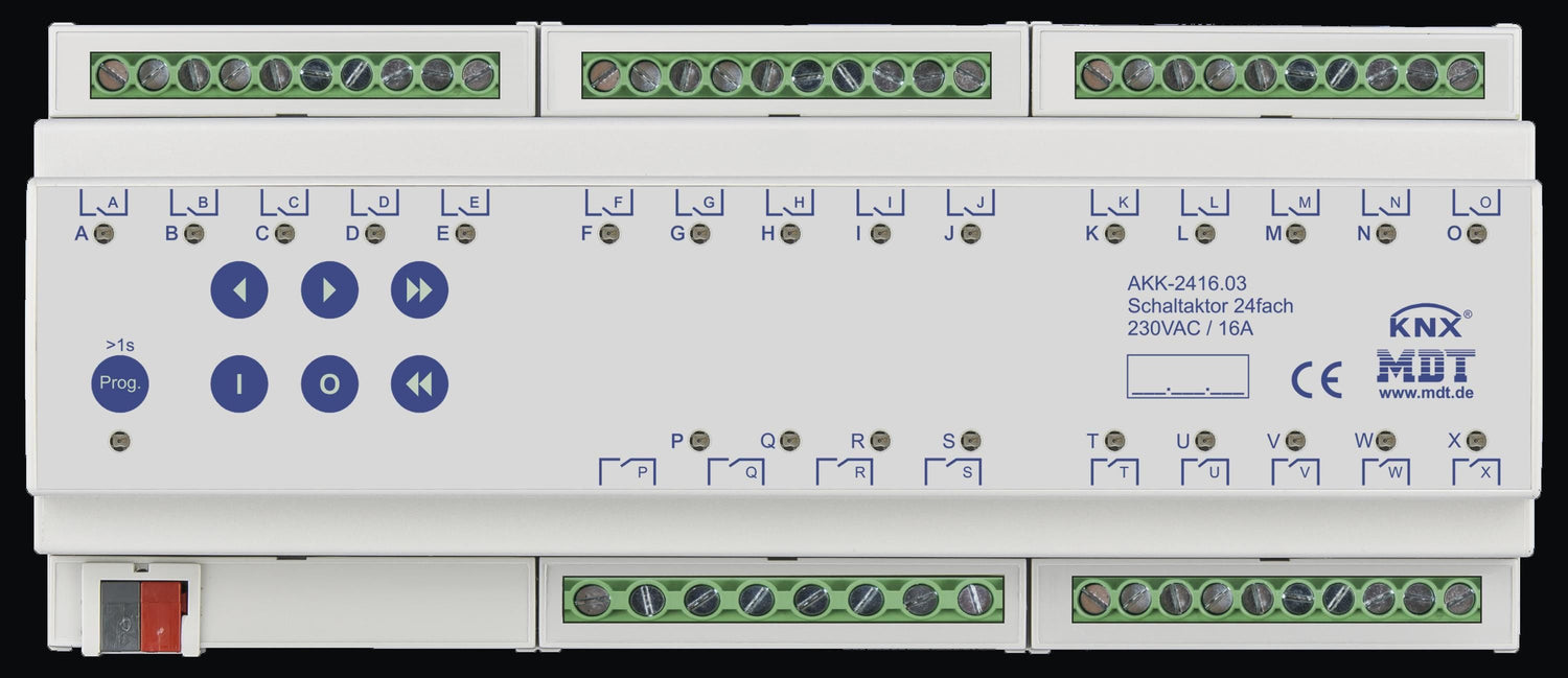 MDT AKK-2416.03 Schaltaktor 24fach 12TE REG 16A 230VAC Kompakt 70µF 10EVG