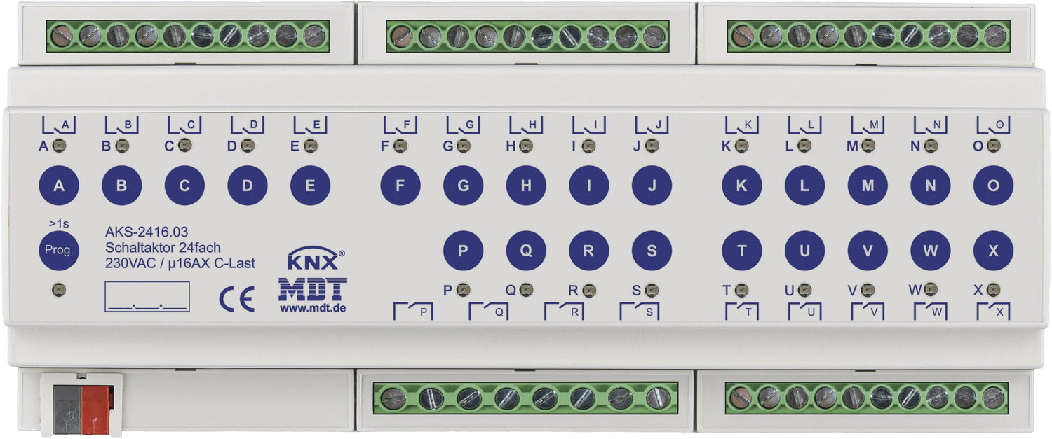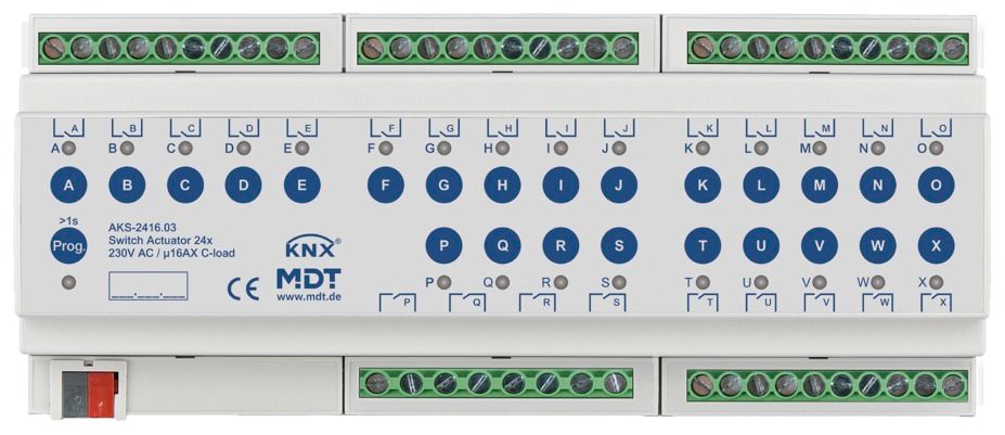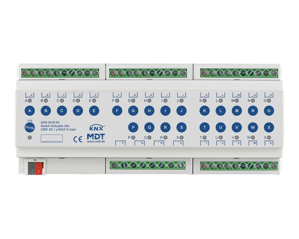 MDT AKS-2416.03 Schaltaktor 24fach 12TE REG 16A 230VAC C-Last Standard 140µF