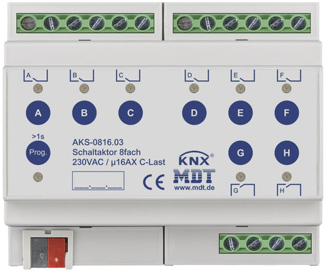 MDT AKS-0816.03 Schaltaktor 8fach 6TE REG 16A 230VAC C-Last Standard 140µF