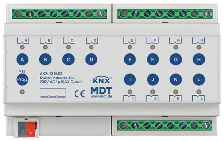 MDT AKS-1210.03 Schaltaktor 12fach 8TE REG 10A 230VAC C-Last Standard 140µF