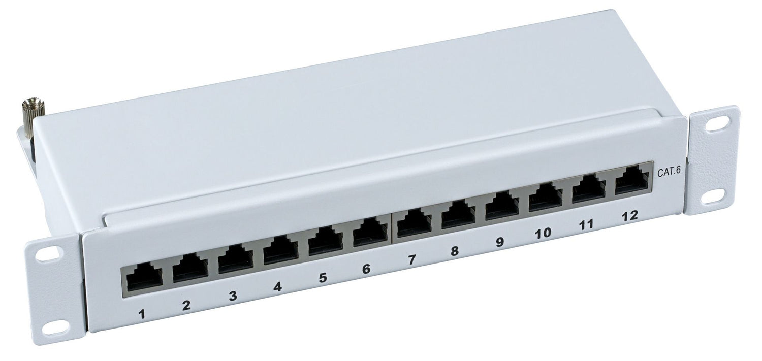 Die hohe Qualität des geschirmten Cat.6 RJ45 Mini-Patchpanels gewährleistet sehr gute Eigenschaften für 5 Gigabit Ethernet Anwendungen. Zudem zeichnet sich das Mini-Patchpanel durch seine vielfältigen Montagemöglichkeiten aus. Es ist für den Einbau in eine 10" Ebene, zur Befestigung an der Wand oder in Verbindung mit dem Hutschienenklemmset (Art.-Nr. H83030.1) zur Hutschienenmontage geeignet.<br><br>10" Montage/Wandbefestigung oder Hutschienenmontage möglich, 1HE<br>12 Ports<br>LSA Anschlussleiste für Verlegekabel AWG24..AWG22<br>Farbcode nach TIA/EIA 568 A/B<br>Deckel mit Schnellverschluss<br>Mit Erdungsklemme<br><br>Lieferumfang:<br>12 Kabelbinder, Montageanleitung<br>4 Schrauben (M6x16mm) und Mutter
