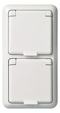 Steckdose 2-fach, Farbe: reinweiß waagerecht und senkrecht montierbar, Komplettgeräte Schutzkontakt-Steckdosen 16 A 250V AC Für Unterputzmontage, Schutzart IP44, komplett mit Rahmen, mit vormontierter Dichtung und Dichtungsflansch. Schraubklemmen, Klemmbereich für Kupferleiter 1,5 mm² und 2,5 mm², für den sicheren Anschluss von Aluminiumleitern 2,5 mm² ohne Vorbehandlung.