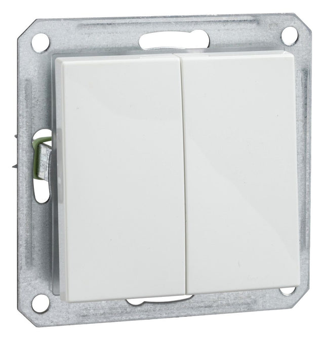 Doppel-Wechselschalter, Farbe reinweiß Wippen mit Schaltwerk 16 A, 250V AC Wippe wird zusammen mit Schaltwerk ausgeliefert. Steckklemme Klemmbereich für Kupferleiter 1,5 mm und 2,5 mm.