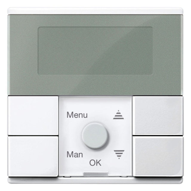 Für Design ELSO JOY. Zum programmierten und zeitabhängigen Schalten von Verbrauchern wie Jalousie-/Rollladenmotorenxx Anzahl der Schaltspiele (hoch/runterfahren): Jalousie-Einsätze: -Pro Kanal: 2 Schaltspiele / Tag. Zentralstellen-Einsatz: -Pro PL-Linie: 2 Schaltspiele / Tag. Funktionen: -Voreingestellte Schaltzeiten (in 2 festen Gruppen: Mo-Fr und Sa-So). Menügeführte Bedienung: -Gangreserve >6 Stunden. Reset zum Rücksetzen auf Werkseinstellung. Einfache Umschaltung Sommer / Winterzeit. Individuelle Laufzeit programmierbar. Manuelle Betätigung jederzeit möglich. Wählbare Pfeiltastenfunktion für Tasten oder globale Szenen. Lokal Jalousien/Rollladen steuern: -Jalousiesteuerungs-Einsatz. Global Jalousien/Rollladen steuern, Szenen aufrufen: -Zentralstellen-Einsatz. Bedienelemente: 5 Tasten. Anzeigeelemente: 5 LED, LCD-Anzeige. Anschluss: Modul-Schnittstelle. Farbe: reinweiß.