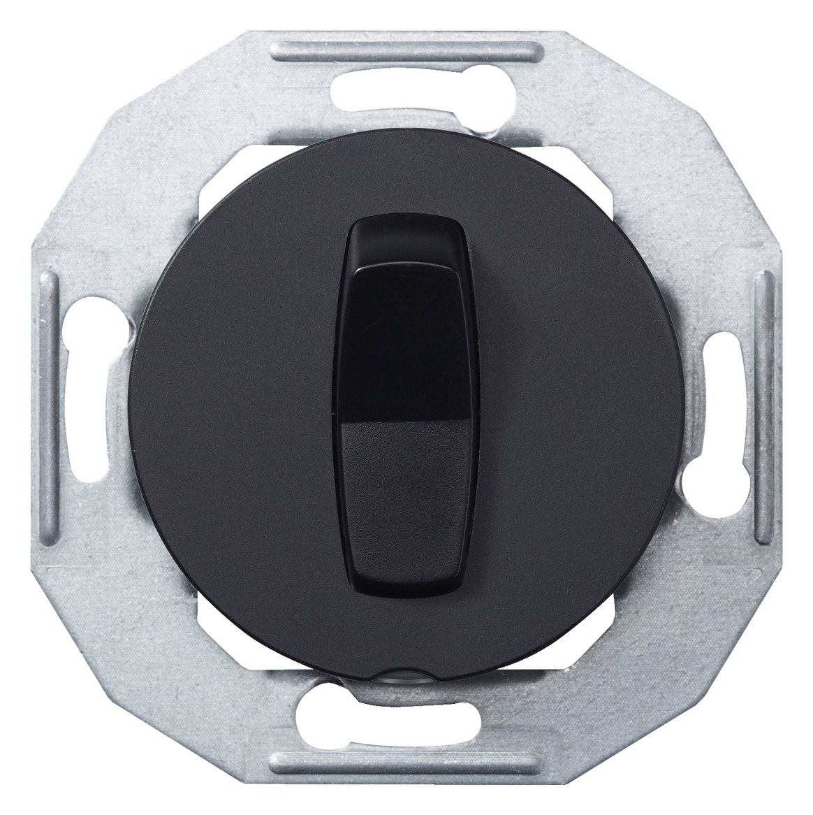 Taster komplett mit Zentralplatte Farbe schwarz Design RENOVA. RENOVA nostalgische Formen im Bakelit-Look. Hinter diesem Retrodesign verbergen sich Spitzenelektronik und ausgeklügelte Mechanik in einer optimalen Verbindung zwischen moderner Funktionalität und klassischer Form.