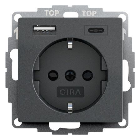 GIRA 245928 SCHUKO-Steckdose Shutter USB 2f Typ A/C System 55 Anthrazit