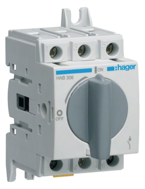 Lasttrennschalter 3polig 63A für Hutschiene oder Montageplatte.Lasttrennschalter für die Montage auf Hutschiene oder Montageplatte, Drehantrieb direkt am Gerät im AUS-Zustand mit einem Vorhängeschloss verriegelbar. Gewährleistet das Ein- und Ausschalten unter Last und eine Sicherheitstrennfunktion in allen Niederspannungsstromkreisen.