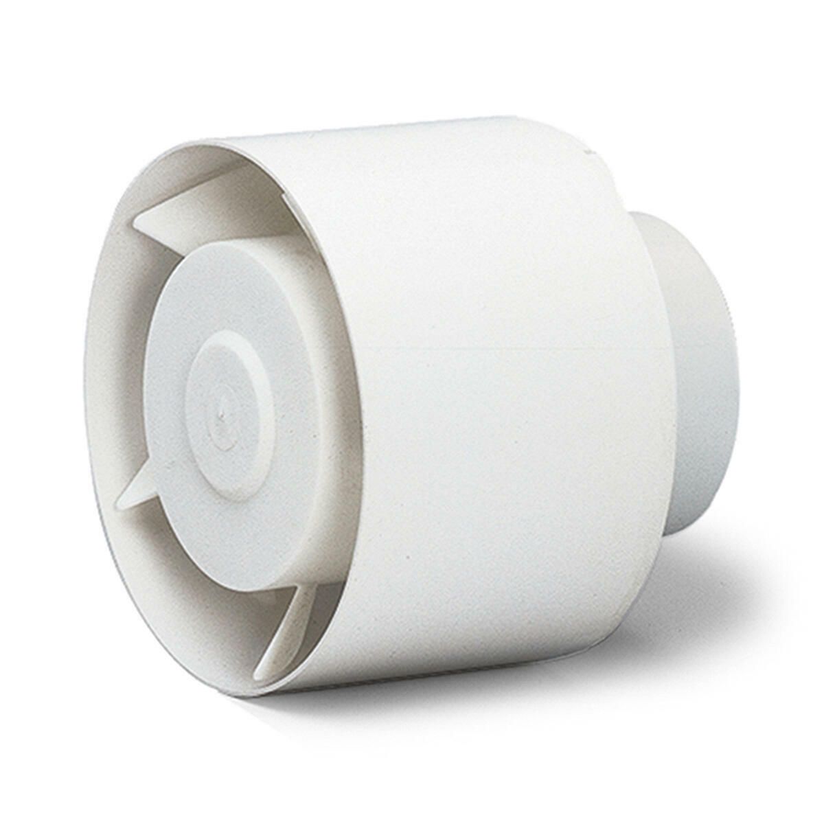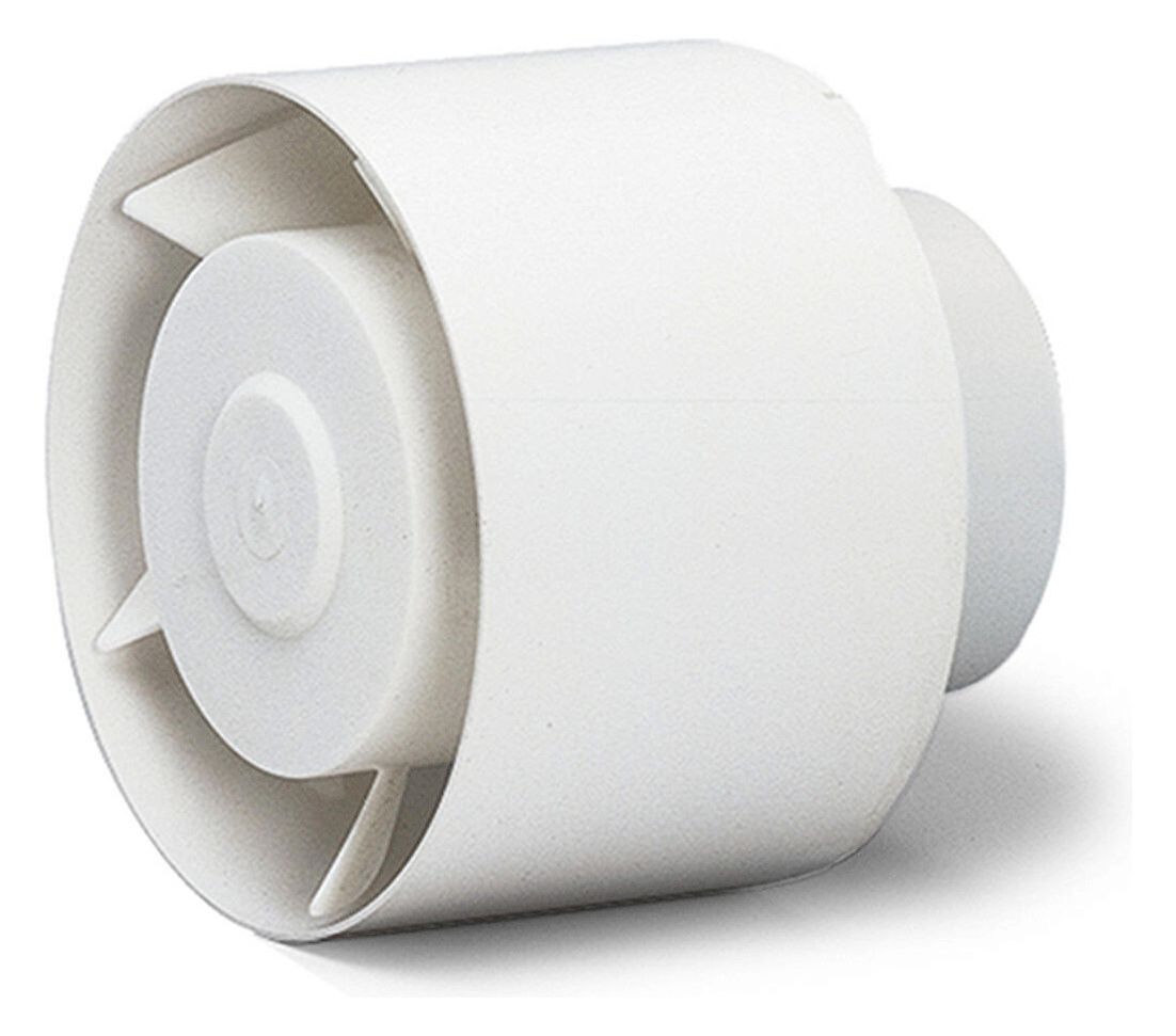 Rohreinschubventilator, axiale Bauart, direkt angetrieben. Rohrhülse mit glatten Enden aus Kunststoff für Einschub in Rohre mit NW 100 passend. Laufrad mit 5 profilierten Schaufeln aus Kunststoff, hoher Wirkungsgrad. Wechselstrom-Spaltpol-Motor mit thermischem Überlastungsschutz für Dauerbetrieb mit wartungsfreien lebensdauergeschmierten Kugellagern, nicht reversierbar.