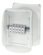 Kabelabzweigkasten aus hochwertigem Thermoplast. Für Aufputz-Anwendungen in Gebäuden oder die geschützte Installation im Freien. Mit Außenlaschen zur Befestigung und Deckelbefestigung über Schnellverschlüsse. Mit innovativer Klemmentechnik bis 50 mm², 5-polig. Kabeleinführung über metrische Vorprägungen in Gehäusewänden und Boden. Anbau-Kabelstutzen gesondert bestellen.