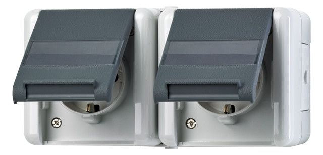 Jung 8220NAW AP/WG SCHUKO Steckdose 2f verdr. Schriftfeld waagerecht WG800