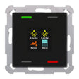 KNX Taster Smart 55 4-fach mit Farbdisplay, Schwarz matt. Ausführung mit 4 Tasterflächen. Passend für 55 mm Schalterprogramme z. B. MDT Sortiment 55 oder GIRA Standard 55, E2, Event, Esprit oder BERKER S1, B3, B7 oder JUNG A 500, A PLUS, A CREATION, AS 500, A 550, A FLOW oder MERTEN 1M, M-Smart, M-Plan, M-Pure. Aktives Farbdisplay zur Funktions- und Statusanzeige. Hintergrundfarbe und Helligkeit des Displays einstellbar (weiß oder schwarz). Displayhelligkeit über Helligkeits- und Tag/Nacht-Objekt einstellbar. Anzeige von Innen-/Außentemperatur und Uhrzeit. Mehrfach-Tippfunktion sendet bis zu 4 Werte auf gleiche oder verschiedene Objekte. Innovative Gruppensteuerung mit langem/extra langem Tastendruck. Ein- und Zweitasterbetrieb für Schalten, Dimmen, Jalousie, Werte. Einstellbare Symbole und Texte für jede Taste/Funktion. Kurzer/Langer Tastendruck mit 2 Objekten. Einbau in Schalterdose mit mitgeliefertem Tragring. Empfohlene Montagehöhe: 1,05 ... 1,20 m. Integrierter Busankoppler. Keine zusätzliche Spannungsversorgung erforderlich. 3 Jahre Produktgarantie.