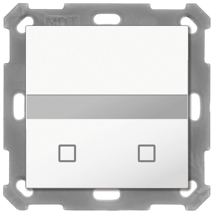 KNX Bewegungsmelder/Automatikschalter TS 55, Reinweiß matt. Ausführung mit Temperatursensor und 2 Sensortasten. Passend für 55 mm Schalterprogramme z. B. MDT Sortiment 55 oder GIRA Standard 55, E2, Event, Esprit oder BERKER S1, B3, B7 oder JUNG A 500, A PLUS, A CREATION, AS 500, A 550, A FLOW oder MERTEN 1M, M-Smart, M-Plan, M-Pure. Bewegungsmelder mit 2 Sensoren und Lichtsensor. Zwei Sensortasten für beliebige Funktionen. Temperatursensor zur Erfassung der Raumtemperatur. Erfassungswinkel H 180° / V 15°, Reichweite 6 ... 10 m. Geeignet für Haustiere bis 12 kg. Auslöseempfindlichkeit für Tag, Nacht und Präsenz separat einstellbar. Erkennung der Bewegungsrichtung. 2 Lichtkanäle, 1 HLK- und Alarmkanal. Kurzzeitpräsenz zur Reduzierung der Nachlaufzeit. Master/Slave Funktion, Szenen und Logikfunktionen. Integriertes weißes LED Nachtlicht. Tag/Nacht Funktion, Orientierungslichtfunktion. Sperr- und Zwangsfunktion mit Rückfallzeit. Externer Tastereingang für Automatik und Handbetrieb. Empfohlene Montagehöhe: 1,05 ... 1,20 m. Integrierter Busankoppler. 3 Jahre Produktgarantie.