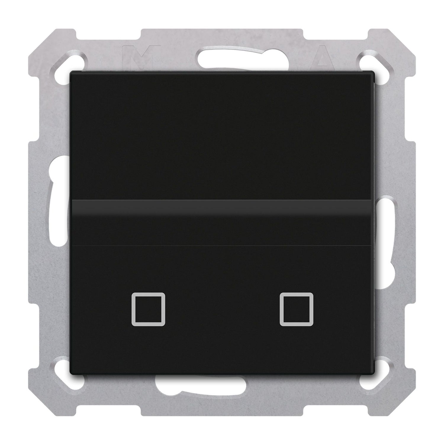 KNX Bewegungsmelder/Automatikschalter TS 55, Schwarz matt. Ausführung mit Temperatursensor und 2 Sensortasten. Passend für 55 mm Schalterprogramme z. B. MDT Sortiment 55 oder GIRA Standard 55, E2, Event, Esprit oder BERKER S1, B3, B7 oder JUNG A 500, A PLUS, A CREATION, AS 500, A 550, A FLOW oder MERTEN 1M, M-Smart, M-Plan, M-Pure. Bewegungsmelder mit 2 Sensoren und Lichtsensor. Zwei Sensortasten für beliebige Funktionen. Temperatursensor zur Erfassung der Raumtemperatur. Erfassungswinkel H 180° / V 15°, Reichweite 6 ... 10 m. Geeignet für Haustiere bis 12 kg. Auslöseempfindlichkeit für Tag, Nacht und Präsenz separat einstellbar. Erkennung der Bewegungsrichtung. 2 Lichtkanäle, 1 HLK- und Alarmkanal. Kurzzeitpräsenz zur Reduzierung der Nachlaufzeit. Master/Slave Funktion, Szenen und Logikfunktionen. Integriertes weißes LED Nachtlicht. Tag/Nacht Funktion, Orientierungslichtfunktion. Sperr- und Zwangsfunktion mit Rückfallzeit. Externer Tastereingang für Automatik und Handbetrieb. Empfohlene Montagehöhe: 1,05 ... 1,20 m. Integrierter Busankoppler. 3 Jahre Produktgarantie.