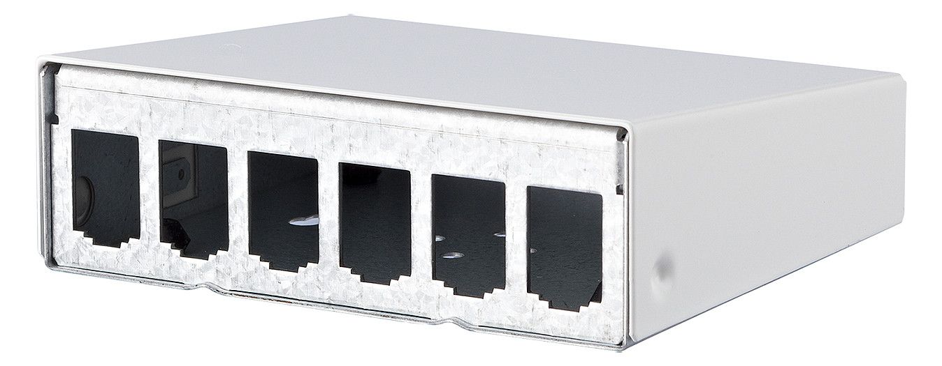 Modulgehäuse Aufputz unbestückt für Einzelmodule in Modulbauform, stabiles Stahlblechgehäuse, Gehäuseoberteil pulverbeschichtet in RAL9010, einfaches Aufsetzen und Abnehmen des Gehäuseoberteils durch schraubfreie Befestigung, Potentialausgleich über Flachstecker möglich, Zusätzliche Kabelzugentlastung am Gehäuseunterteil mit Kabelbinder, Das Gehäuse eignet sich zur direkten Wandmontage, als Desktop und mit Tragschienenadapter mini zur Tragschienenmontage , Der Gehäuseboden der 3 Port- und 4 Port-Version lässt sich entfernen. Hier besteht die zusätzliche Befestigungsmöglichkeit über eine 60 mm Lochspur, Optional erhältlich und in allen Gehäusen außer 2 Port verwendbar: FO Erweiterungsset für Modul und Keystone AP-Gehäuse 130861-MSK-E, Optional erhältlich für Gehäuse 2x12 Port: Zugentlastung für Patchkabel 130861-24ZE-E, Varianten: 2, 3, 4, 6, 8, 12, 16 und 2x12 Ports