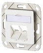 Kanal-Anschlusseinheit für Einzelmodule in Modulbauform, Steckrichtung des Moduls 45° nach unten geneigt, Zugentlastung am Modul, mit Sichtfenster für beiliegende Beschriftungseinlage, Beschriftungsbogen 209 x 294 mm siehe Zubehör, integrierte Staubschutzklappen (auch farbig erhältlich), Abdeckteile reinweiß RAL 9010, Oberfläche matt strukturiert , kompatibel zu Design-Zentralstücken von Schalterprogrammen, Varianten: 1 Port, 2 Port, 3 Port, Farbvarianten: reinweiß