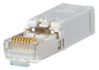 Cat.6 Klasse E, A Stecker zum Einbau in Steckergehäuse IP67 der Varianten 1, 4, 5, und 14Einhaltung der Klasse E, A nach ISO/IEC 11801, DIN EN 50173-1für 10GBit Ethernet (IEEE 802.3an), Remote Powering (PoE, PoE plus und UPoE) und HDBaseT geeignet, Anschluss von AWG 27/7 - 24/7, auch AWG 24/1 möglich, Volldraht Cu-Leiterdurchmesser 0,36 mm bis 0,51 mm, Litze Cu-Leiterdurchmesser 0,46 mm bis 0,61 mm, Aderdurchmesser 0,85 mm bis 1,05 mm, Kabelmantel bis 7,3 mm, ohne Rasthebel, Anschluss von Piercing-Kontakten und Schirm mit Crimpwerkzeug in einem Arbeitsgang möglich, Farbe kann zu Abbildung variieren