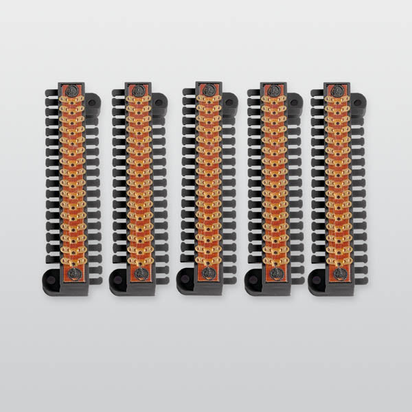 Lötleisten 16-polig mit Befestigungsschrauben und Kabelbindern zum Einbau in Einbruchmelderzentralen und Verteiler-Leergehäuse.