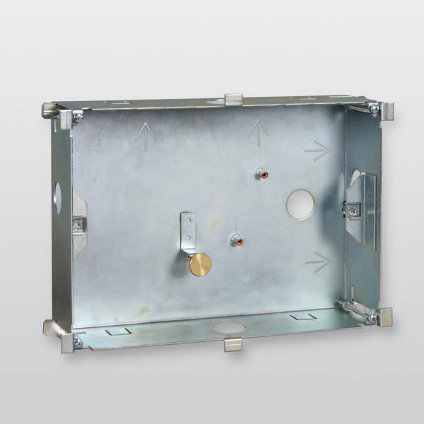 Gehäuse zur Unterputzmontage des BT 801 in Hohlwänden. Das UG 801 HW ist mit einer Rändelschraube für die Feineinstellung des Sabotagekontaktes ausgestattet. Durch einen bis zu ±2,5° drehbaren Montagerahmen lässt sich ein nicht lotgerechter Einbau des Unterputzgehäuses ausgleichen.