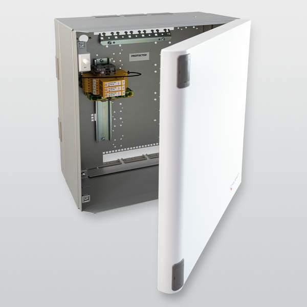 Überspannungsschutz-Set ÜS2 FW- Peripherie zum Schutz der externen Feuerwehrperipherie vor zu hohen Spannungen durch einen Blitzschutz- Potenzialausgleich am Gebäudeeintritt nach DIN VDE 0185-305. Das Überspannungsschutz-Set ÜS2 FW- Peripherie besteht aus: - Stahlblechgehäuse TELENOT VTZ 3 GR100 mit Sabotageüberwachung und DIN- Hutschiene - 3 Basisteile BXT BAS - 3 Ableiter-Module BXT ML4 BE 24 Das Stahlblechgehäuse mit Sabotage- Überwachung VdS Kl. C ist mit Überspannungsableitern für Feuerwehrschlüsseldepot, Freischaltelement und Blitzleuchte ausgestattet. Durch den dreiteiligen Aufbau ist das Gehäuse sehr montagefreundlich und ermöglicht eine komfortable Befestigung und normkonforme Trennung von geschützter und ungeschützter Kabelführung.