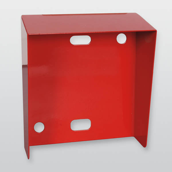 Das rote Wetterschutzgehäuse bietet dem Handfeuermelder aus Aluminium Schutz gegen mechanische und Witterungseinflüsse. Das Wetterschutzgehäuse erhöht die Schutzart des Handfeuermelders auf IP54.