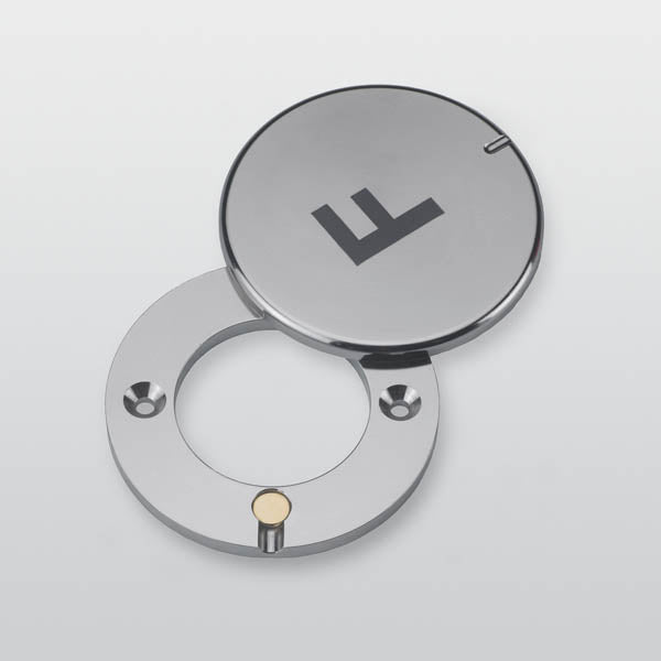 Vandalismusrosette zum Schutz des Freischaltelements FSE. Die Vandalismusrosette kann nur mit dem Spezial-Magnetschlüssel durch die Feuerwehr geöffnet werden. Dadurch wird eine Manipulation des Schließzylinders (z. B. durch Kaugummi oder Klebstoff) verhindert.