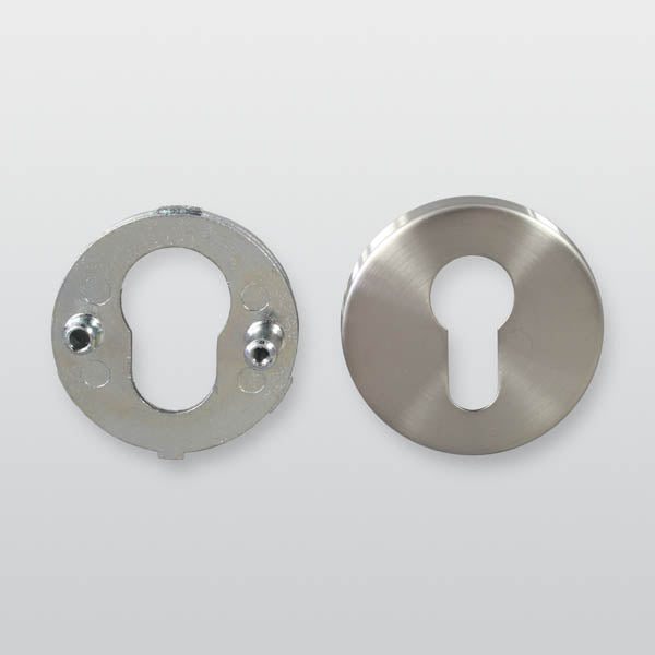 Die Rundrosette ist der Klassiker für Wohnungstüren. Sie deckt bestehende DIN- Bohrungen ab und die Löcher können in der Regel wieder verwendet werden. Die Rosette wird in Verbindung mit Profilzylindern eingesetzt.