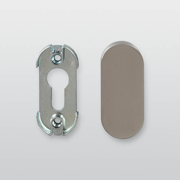 Die Ovalrosette ist durch ihre schmale Bauform unter anderem an Rohrrahmentüren montierbar. Wird in der Tür kein Profilzylinder eingesetzt, kann durch die Blindrosette eine vorhandene Aussparung in der Tür abgedeckt werden.