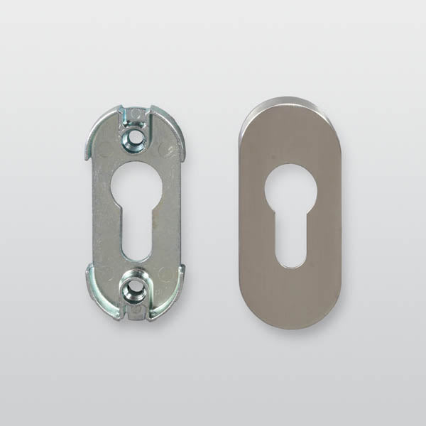 Die Ovalrosette ist durch ihre schmale Bauform unter anderem an Rohrrahmentüren montierbar. Die Rosette wird in Verbindung mit Profilzylindern eingesetzt.