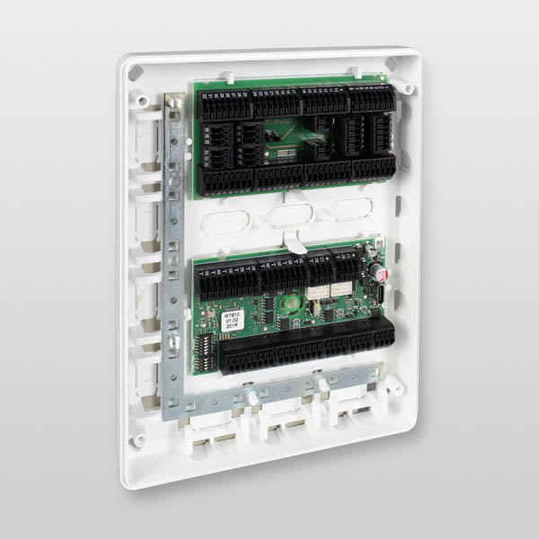 VdS-Klasse C (G 123039) EN 50131-1: Grad 3 Türmodul MT510-H5B zum Anschluss der gesamten Türperipherie von bis zu zwei Zugangstüren an das Auswerte- und Steuergerät hilock 5500 des Zutrittskontrollsystems hilock 5000 ZK. Es können bis zu 8 Türmodule an einem Auswerte- und Steuergerät hilock 5500 betrieben werden (jeweils 4 Türmodule pro RS485-Schnittstelle). Das Türmodul MT510-H5B im Gehäusetyp K31 mit Federkraftklemmen ist zur Aufputzmontage geeignet.