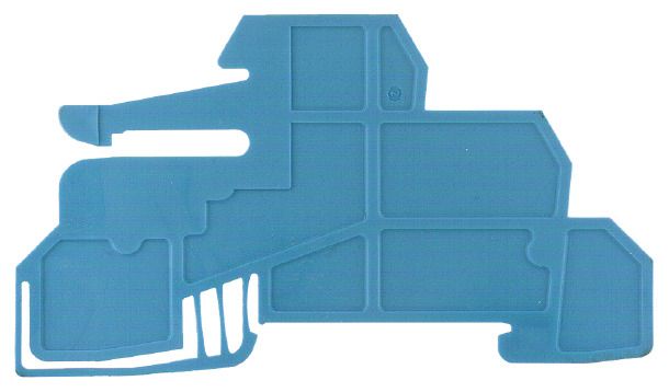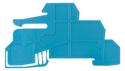Abschluss- und Zwischenplatte für den Berührungsschutz an spannungsführenden Teilen von Reihenklemmen. Die Platte wird auch zur optisch erkennbaren Trennung von Stromkreisen eingesetzt, um Verdrahtungsfehler zu vermeiden.