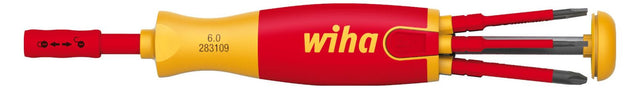 <p><b>Steigert Ihre Effizienz</b>: Wiha LiftUp electric spart 75 % Volumen, 50 % Gewicht, für 100 % Effizienz.</p><p><b>Schont Ihre Gesundheit</b>: Keine Verletzungsgefahr, alle Klingen sicher im Inneren des Griffs verstaut.</p><p><b>Bietet Ihnen vollen Schutz</b>: Jedes Werkzeug einzeln bei 10.000 V AC getestet und zugelassen für 1.000 V AC.</p><p><b>Erhöht Ihre Sicherheit</b>: Wiha slimBits gewährleisten einen guten und geschützten Zugang zu tief liegenden Schrauben.</p><p><b>Maße Produkt</b>: 342 x 41 x 130 mm (L x B x T)</p><p><b>Anwendung</b>: Geeignet zum Verschrauben im Bereich von spannungsführenden Teilen bis 1.000 V AC, insbesondere im mobilen Einsatz.</p><p><b>Bithalter</b>: Isolierter Bithalter aus Metall hält alle slimBits zuverlässig.</p><p><b>Bithalter</b>: Nur für 6 mm slimBits.</p><p>Übersichtlich und einfache Entnahme</p><p>Spart 75% Platz ein</p><p>slimBits ermöglichen Zugang zu tiefliegenden Schrauben dank eingelassener Isolierung</p><p>Erweiterbar und kompatibel mit EVF-Produkten</p><p>Sicheres Arbeiten bis 1.000 V AC</p><p>Der Schraubendreher mit Bit-Magazin LiftUp electric ist der ideale Begleiter für jeden Elektriker im mobilen Einsatz. Das im Griff verstaute Bitdepot bietet Platz für 6 gängige slimBits und fährt per Knopfdruck aus dem Magaziner heraus. Dadurch wird eine einfache Entnahme der 75 mm slimBits gewährleistet. Der isolierte ClicFix-Bithalter aus Metall nimmt alle slimBits sicher auf und verriegelt sie zuverlässig. Diese Technologie macht den Bitmagaziner zu einem universell einsetzbaren Schraubendreher. Auch in Puncto Sicherheit bietet der Magazin-Bithalter das maximal Mögliche. Sowohl der Magazin-Bithalter als auch die enthaltenen slimBits sind nach der internationalen Norm IEC 60900 zertifiziert. Die schlanken, 75 mm langen slimBits gewähren durch die im vorderen Bereich vollständig in den Bit integrierte Schutzisolation einen perfekten Zugriff auf tiefliegende Schraub- oder Federklemmen. Ein weiterer Pluspunkt ist die drehbare Kappe, welche eine komfortable Handhabung gewährleistet. Die 75 mm slimBits sind kompatibel zu allen Produkten der Wiha ElectricVario Family.</p><p>Geprüft gemäß IEC 60900.</p><p>Inhalt:</p><ul><li>1x Bit slimBit electric Schlitz 2,5 mm x 75 mm (34578)</li><li>1x Bit slimBit electric Schlitz 3,5 mm x 75 mm (41159)</li><li>1x Bit slimBit electric Schlitz 5,5 mm x 75 mm (34581)</li><li>1x Bit slimBit electric Pozidriv PZ1 x 75 mm (34585)</li><li>1x Bit slimBit electric Pozidriv PZ2 x 75 mm (34586)</li><li>1x Bit slimBit electric PlusMinus/Pozidriv SL/PZ2 x 75 mm (34590)</li></ul>